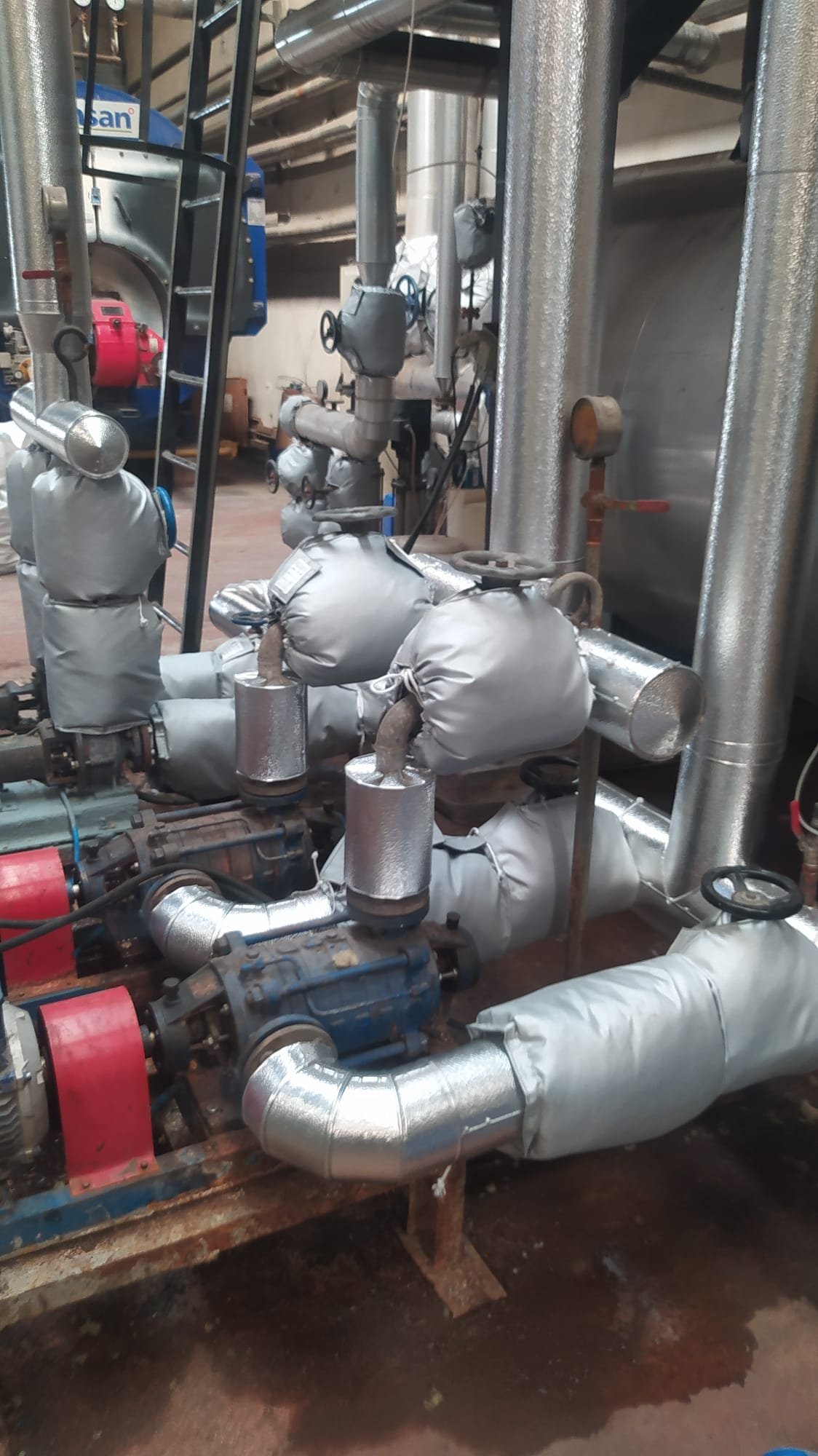 Tesislerde bulunan yakıt kazanı, depolama siloları, basınçlı tanklar, normal tanklar, siklon, baca, fan, havalandırma tesisatı gibi imalatların ve buhar, kondens, kızgın yağ, kostik, iklimlendirme tesisatı gibi boru hatlarının izolasyon işleri, sac kaplama uygulamalarını yapmaktayız.